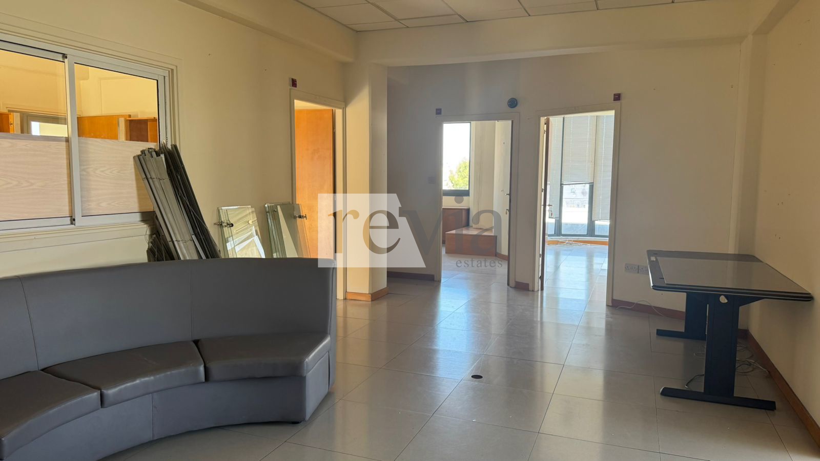 Limassol City – Kapsalos, Office For rent, floor: 1st. The property is 200 sq.m., in Residential, and it has: 7 spaces, 2 wc, 2 kitchens, energy certificate: Not required. Price: €4.000. Revia Estates, contact phone: 70008280, 70008252, email: info@reviaestates.com