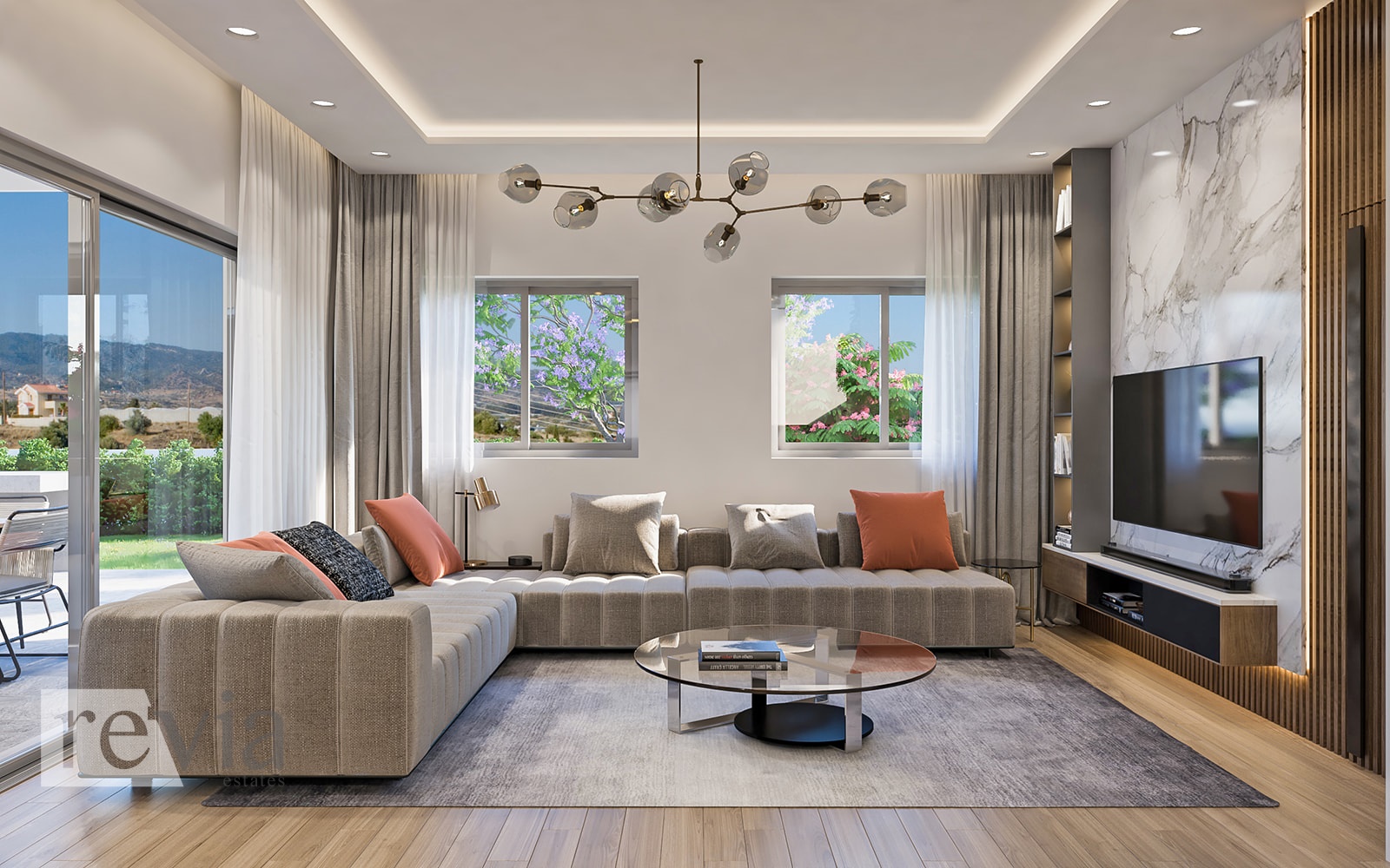 Apartment For sale, floor: 1st, in Mesa Geitonia – Panthea. The Apartment is 113 sq.m.. It consists of: 2 bedrooms (1 Master), 1 bathrooms and it also has 1 parkings (1 Pilotis space). The property was built in 2025, Underfloor heating, Air conditioning, Solar water system are also available, it has Alluminum frames, the energy certificate is: A and its floors are Tiles. The property’s status is: New development, it is close to Transportation, Park, School, Church, Kindergarten, it has Sea, Good, City views view. The Apartment is Bright, Luxury and it also has the following unique features and advantages: Elevator, Storage, Security door, CCTV, Security cameras, Quiet neighborhood, Porch. Price: €400.000. Revia Estates, contact phone: 70008280, email: info@reviaestates.com, website: https://www.reviaestates.com