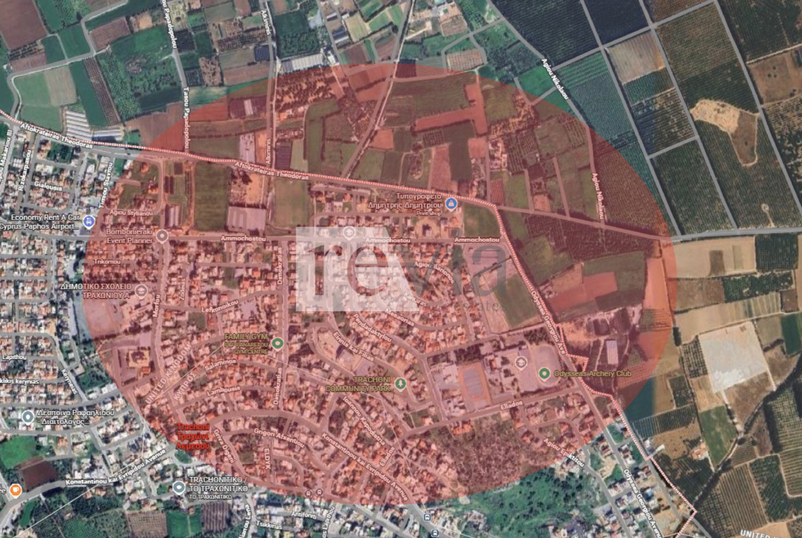 For sale, Plot of Land, in Trachoni. The Plot of Land is , the building factor is 90 and the coverage ratio is 50%. The maximum building allowance is 2 sq.m., with a maximum building height of 8,3 m.. It is suitable for Developers, Residence, it is close to Transportation, Park, Sea, Seaside, School, Church, Kindergarten, Super Market, Mall, Entertainment centers, Port, Cafe/Restaurants, in Residential, 4 Km from other, 6 Km from sea and it has SouthWest orientation. Price: €245.000. Revia Estates, contact phone: 70008280, email: info@reviaestates.com, website: https://www.reviaestates.com