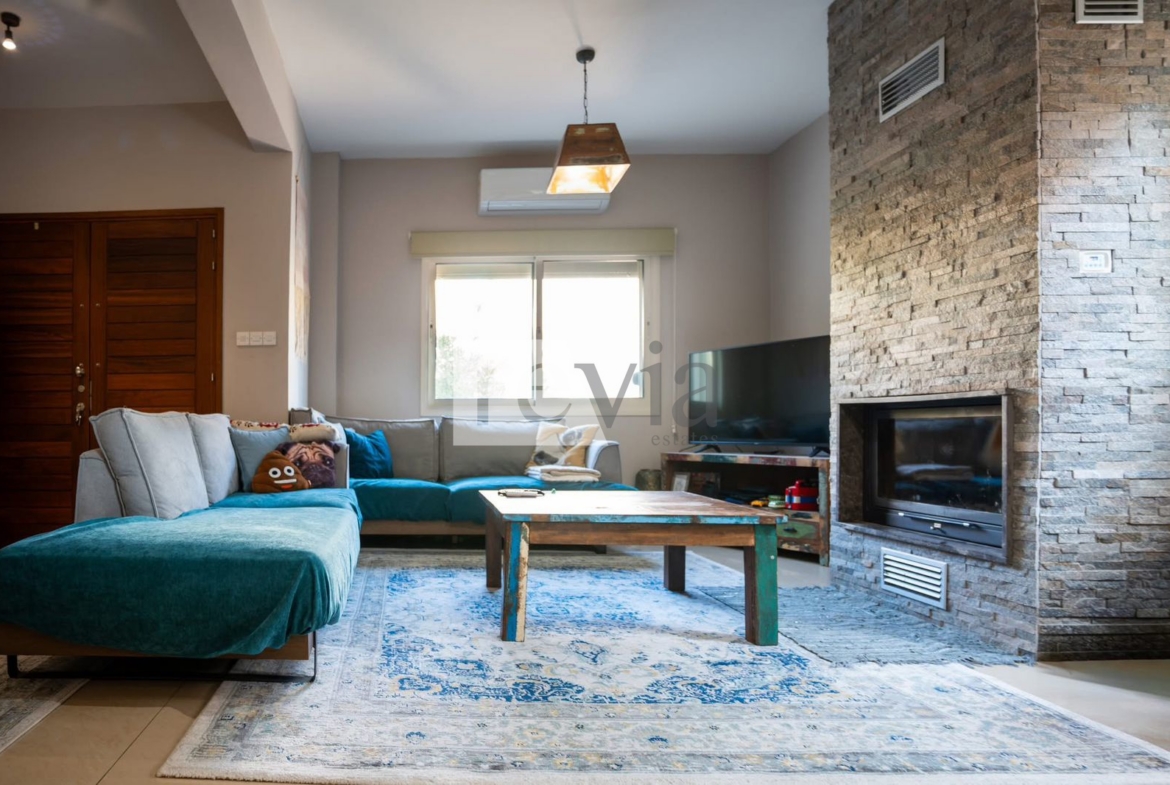 Semi-detached For sale, floor: Ground floor, 1st (2 Levels), in Palodeia. The Semi-detached is 128 sq.m. and it is located on a plot of 240 sq.m.. It consists of: 3 bedrooms, 1 bathrooms, 1 wc, 1 kitchens, 1 living rooms and it also has 2 parkings (2 Open). The property was built in 2009 and it was renovated in 2019, Air conditioning are also available, it has Alluminum frames with Double glazed windows, the energy certificate is: Not required. The property’s status is: Renovated, it is close to Transportation, Park, School, Church, Kindergarten, Super Market, Cafe/Restaurants and it has South orientation. The Semi-detached is Furnished and it also has the following unique features and advantages: Energy fireplace, Storage, Trees, Quiet neighborhood, Porch. Price: €390.000. Revia Estates, contact phone: 70008280, email: info@reviaestates.com, website: https://www.reviaestates.com