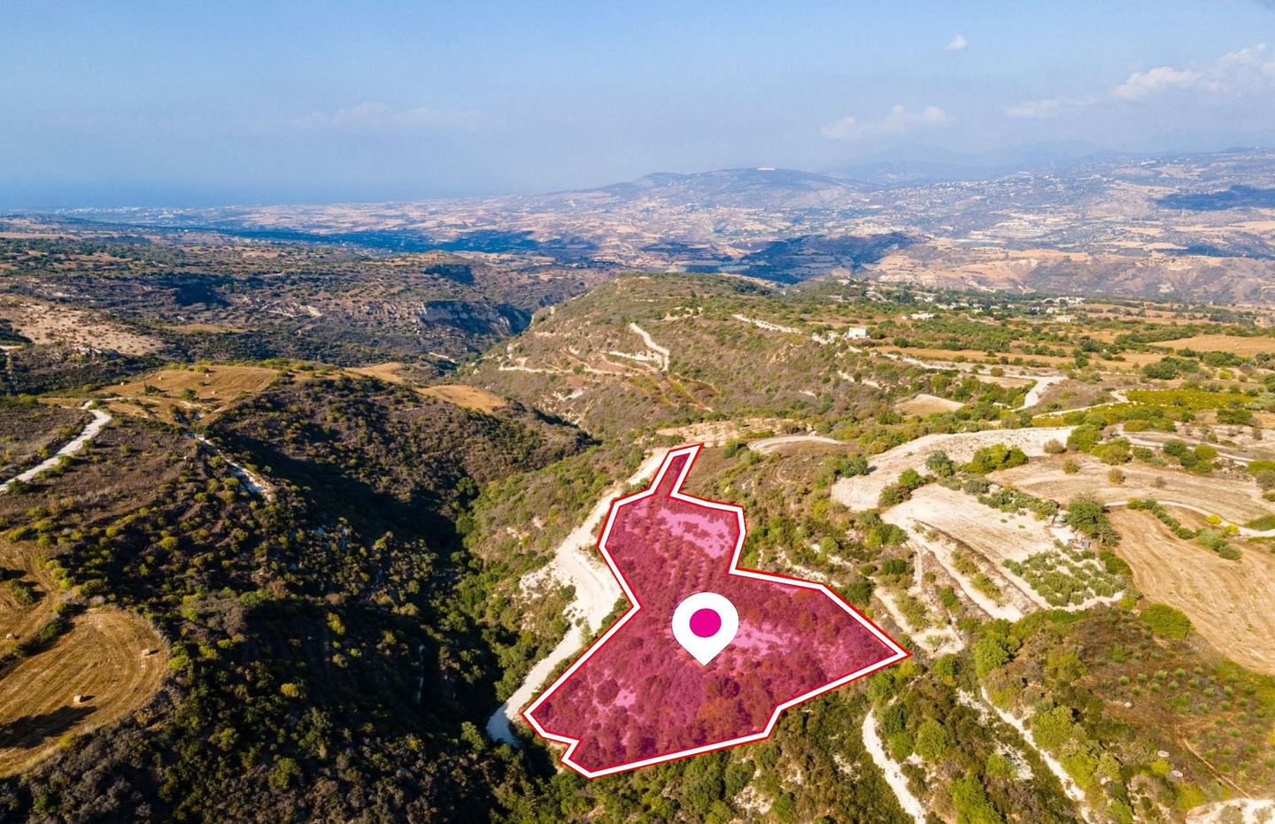 The property is an agricultural field in Kalo Chorio Oreinis. It is located 1km from the center of the village and 360m from the connecting road of Lakatamia and Agros. The field has an area of 1,487sqm. The nearest registered road is 360m away.
