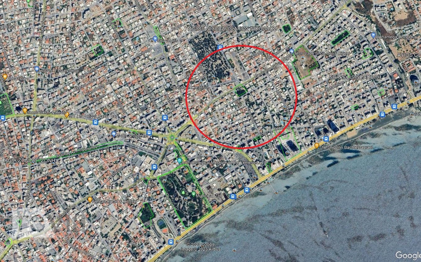 The wider area is mainly residential with some commercial activity along Eleftherias Avenue.